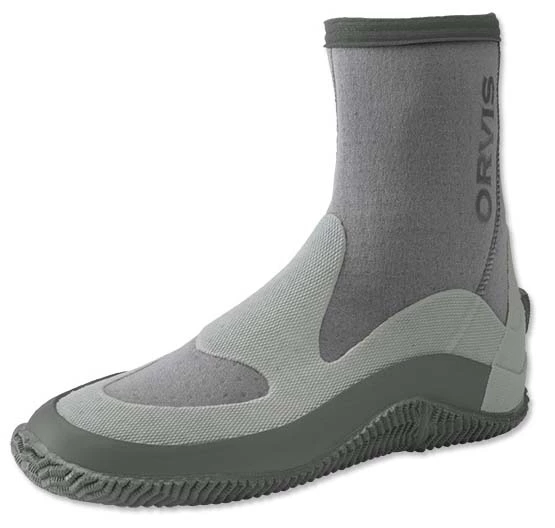 De Orvis Christmas Island Wading Boots zijn nieuwe en verbeterde waadschoenen gebaseerd op de al lang bestaande en best verkochte Christmas Island Flats-waadschoenen. Gemaakt van Airprene en gevulkaniseerd rubber. Het Airprene-bovenwerk laat water vrij door de laars stromen, maar houdt zand en gruis buiten. De Orvis Christmas Island Wading Boots zijn gemakkelijk aan en uit te trekken met een YKK®-ritssluiting aan de zijkant die aan de bovenkant is vastgemaakt met een haak om haken van de lijn te voorkomen. De zool en zijkant zijn gemaakt van stevig geribbeld rubber om te beschermen tegen koraalafschuring en bieden uitstekende stabiliteit, maar zijn veel flexibeler dan zijn voorganger. Ze bieden comfort en ‘gevoel’ op oneffen oppervlakken.