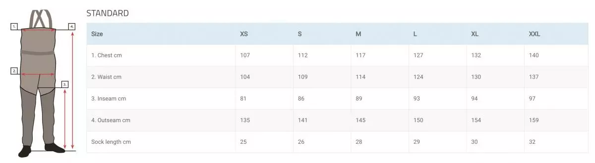 | 4. Outseam cm | 135 | 141 | 145 | 150 | 154 | 159 |
