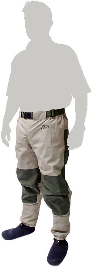 3-laags ademend materiaal, dubbel versterkt op knie en zitvlak, met waadriem en ingebouwde gravel guards. Dikke neopreen sokken met gesealde naden.